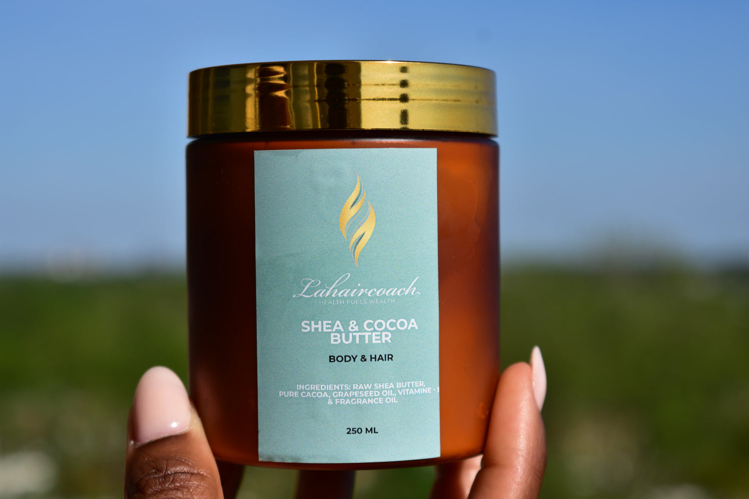 Transform your skin and hair with our Natural Shea & Cacao Butter. Enriched with shea, cacao, and grapeseed, this luxurious blend helps reduce dry skin and dark spots, enhances complexion, and strengthens hair. Perfect for daily use, especially on hair ends to lock in moisture and boost resilience. Indulge in softer, more radiant skin and hair.